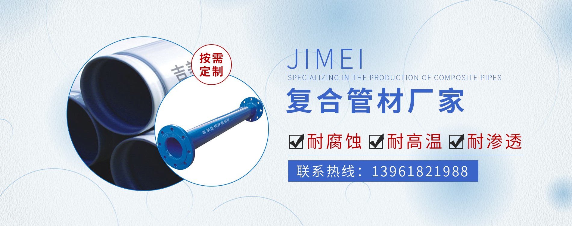 常州市吉美管業(yè)有限公司,是一家專業(yè)生產(chǎn)復合管材的生產(chǎn)企業(yè)。 依靠公司技術力量和多年的實踐經(jīng)驗,可年生產(chǎn)內(nèi)襯塑、內(nèi)襯外涂、內(nèi)外涂PE、PEX、EP復合管道以及工業(yè)防腐管道等多種復合管材及管件10萬噸的生產(chǎn)能力。